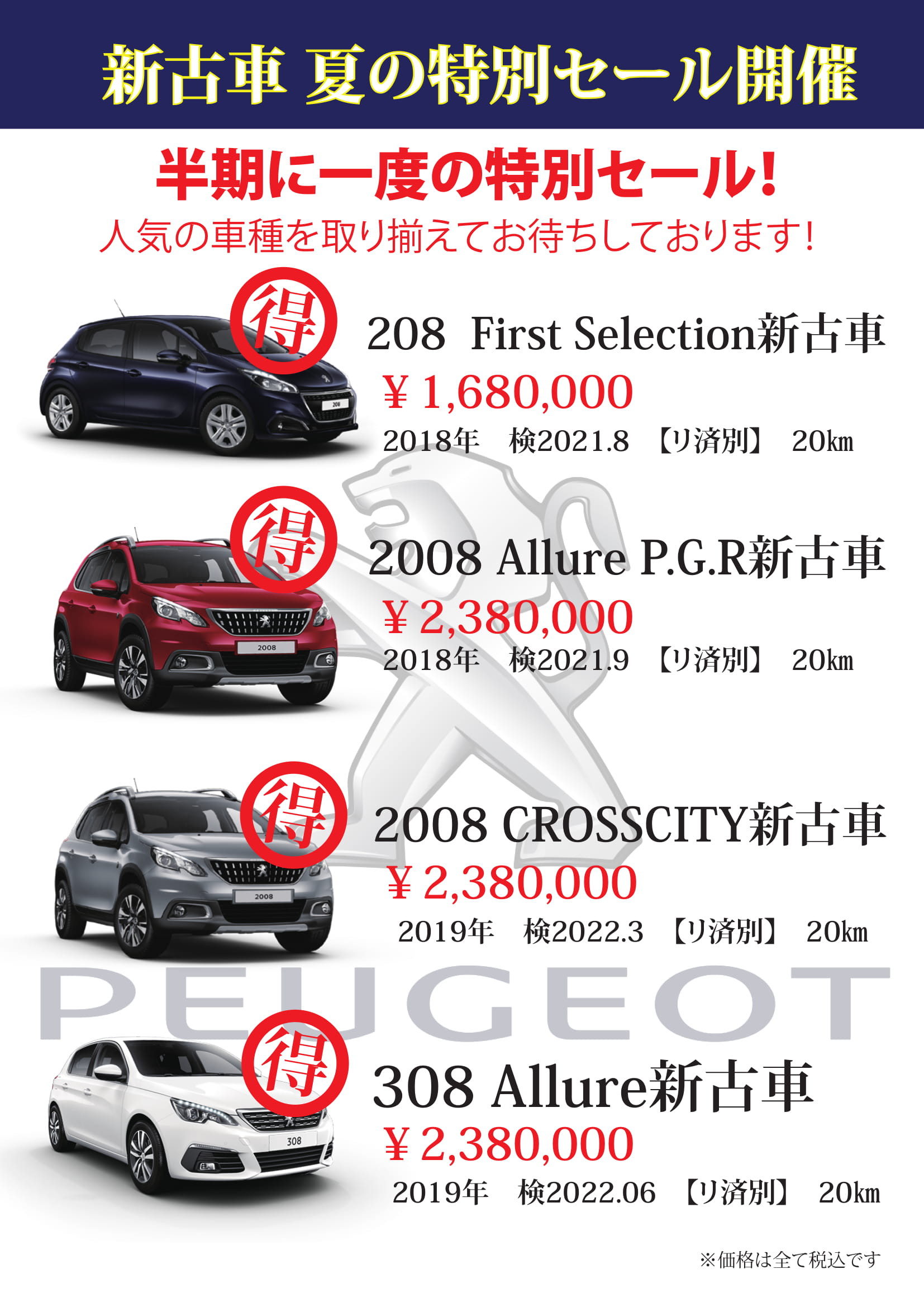 プジョー千里 新古車 夏の特別セール